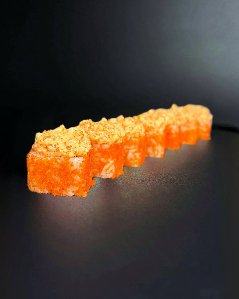 Сыр сливочный, Томага, Огурец, Тобико Оранжевая, Фирменный соус с креветкой