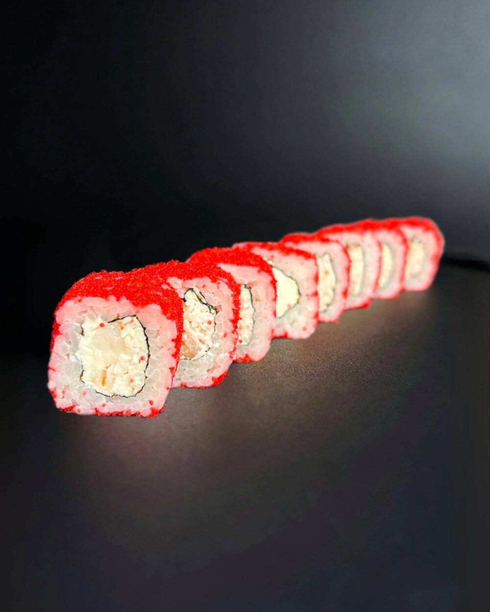 Креветка тигровая, Крабовая палочка Премиум, Сыр сливочный, Тобико красная