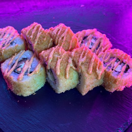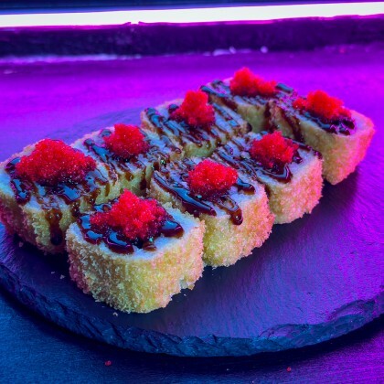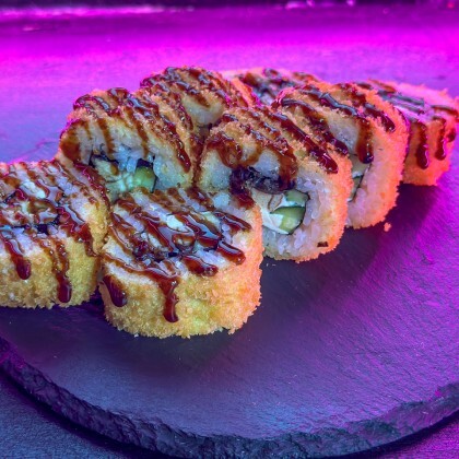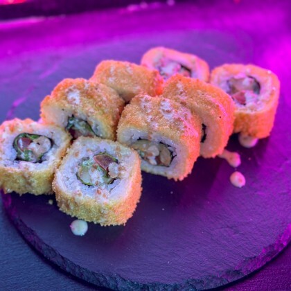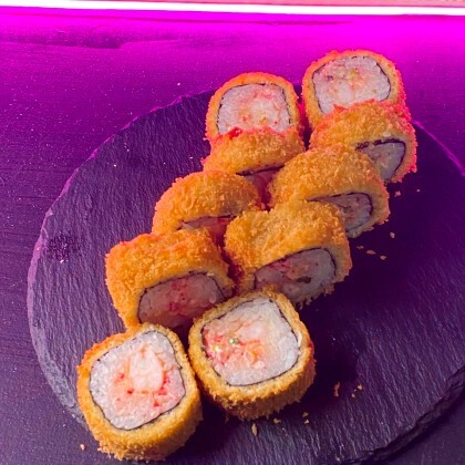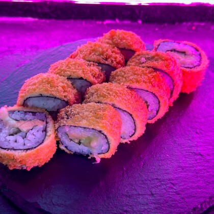 Сыр сливочный, креветка тигровая, тобико красная, огурец